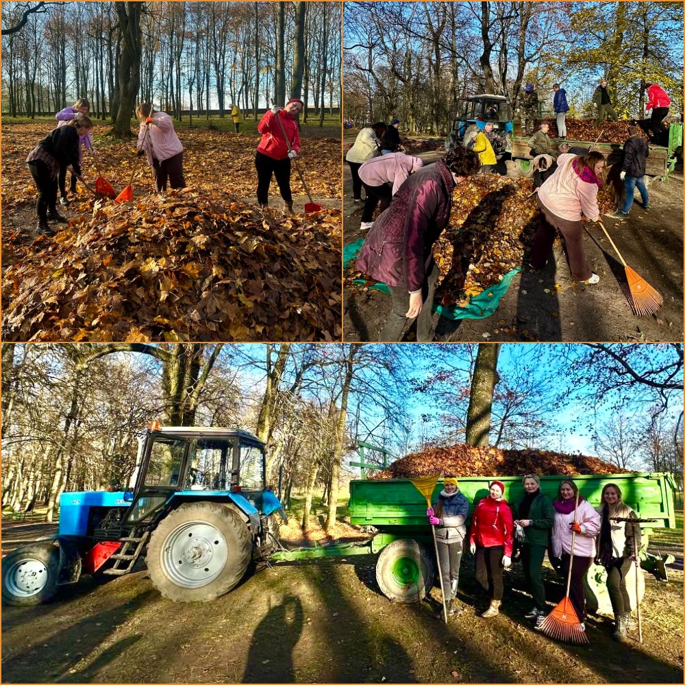 И пока одни пополняют свои фотоальбомы свежими фотографиями на фоне золотого листопада, другие ведут борьбу с опавшей листвой на улицах, во дворах и парках.Слаженно и с отличным настроением коллектив ГУ «Свислочский центр социального обслуживания населения» сегодня убрал листву со своей территории в городском парке.
