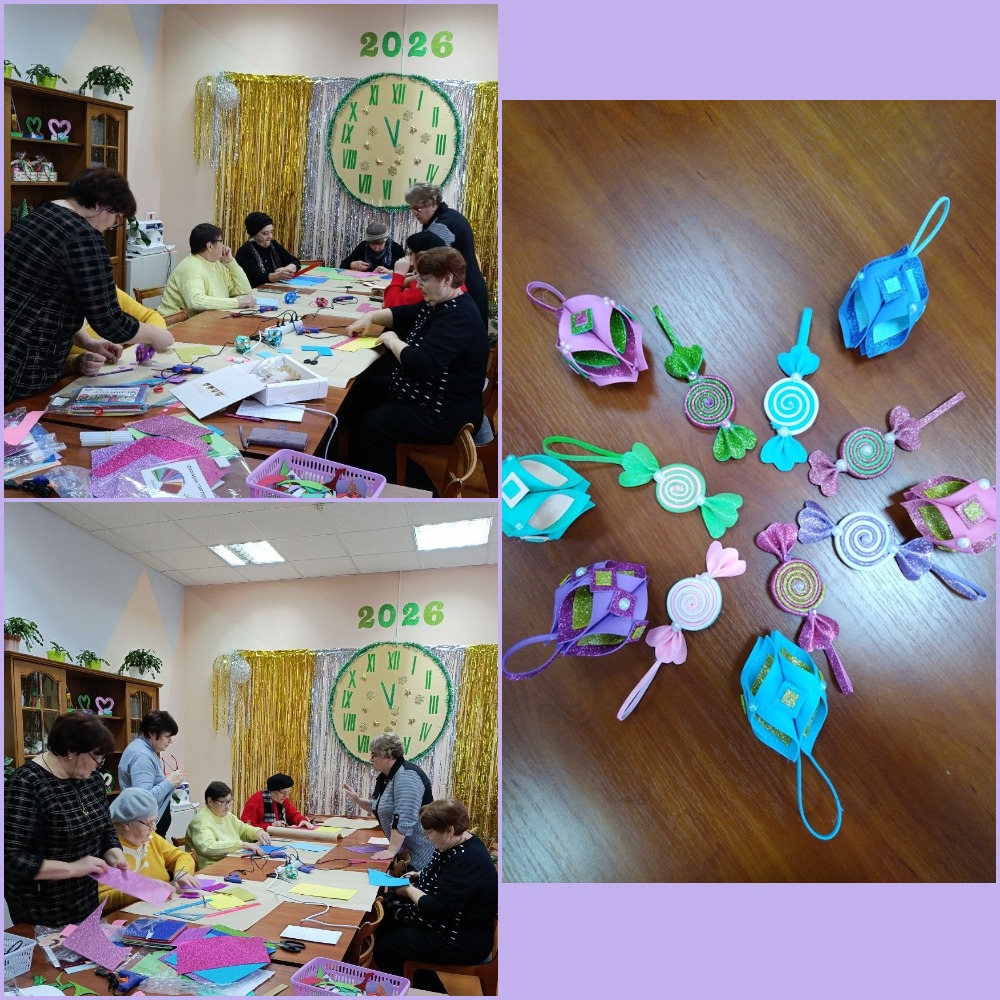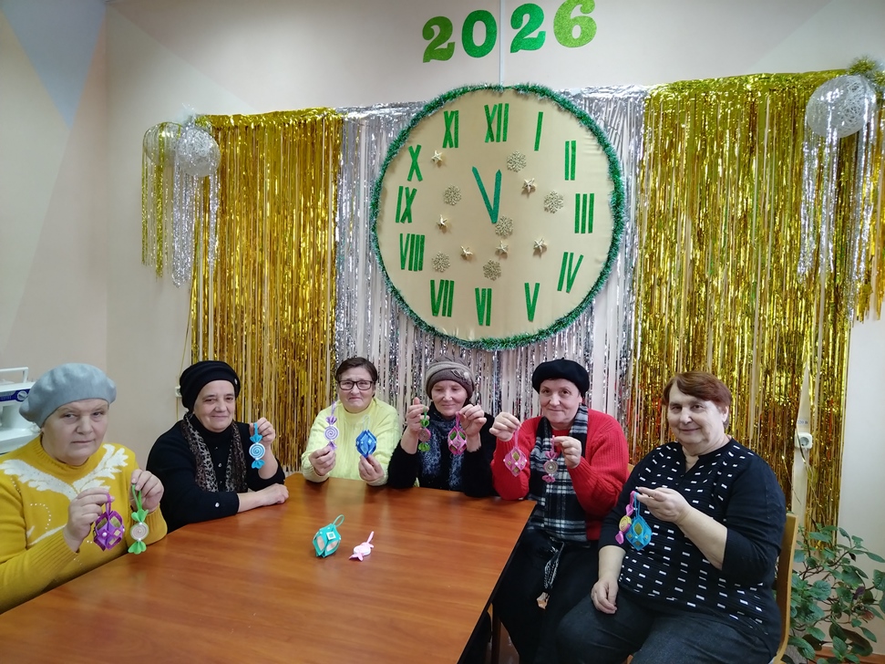 16 декабря 2025 г. в отделении дневного пребывания для граждан пожилого возраста филиала ГУ "Свислочский центр социального обслуживания населения" г.п. Порозово состоялся мастер-класс по изготовлению ёлочных игрушек из глитерного фоамирана.