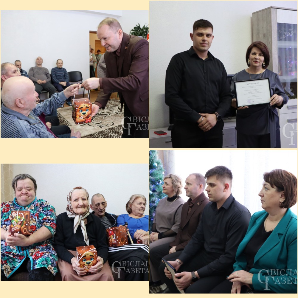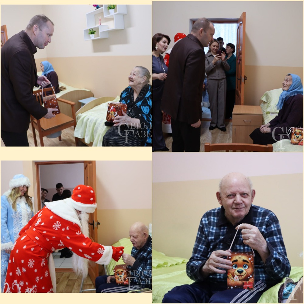 К добрым пожеланиям присоединилось КСУП «Ханчицы-Неман». Уже на протяжении ряда лет сельхозпредприятие шествует над этим социальным учреждением и неизменно радует своих подопечных новогодними подарками. На этот раз гости появились на пороге тоже не с пустыми руками: на исполнение маленьких желаний бабушек и дедушек КСУП «Ханчицы-Неман» выделило 700 рублей. Денежный сертификат заведующей отделением Светлане Тесновской торжественно вручил Илья Вербицкий. Плюс предприятие положило в мешок Деда Мороза 33 сладких подарка на сумму свыше 800 рублей. Угощение получили все 24 постояльца отделения круглосуточного пребывания. К тем, кто не смог прийти в зал, праздник заглянул прямо в комнаты. Еще восемь сладких наборов нашли своих пожилых адресатов в поселке Кобыльники – в домах совместного самостоятельного проживания.– Забота о пожилых – повседневная добрая миссия нашего коллектива, – отметила руководитель отделения Светлана Тесновская. – Здесь люди имеют то, что важно для их возраста. Заботу. Внимание. Общение. Чувство того, что ты кому-то нужен. Наши работники каждый день делают все, чтобы жизнь пожилых людей и постояльцев с инвалидностью была комфортной, помогают одиноким сердцам скрасить старость. Мы понимаем, насколько это важно для них. Наша задача – окружить любовью и поддержкой тех, кто в силу разных причин остался без самых близких людей рядом. В Новый год – особенно. Поддержка районной власти и наших спонсоров в лице КСУП «Ханчицы-Неман» и СПК имени Деньщикова здесь как всегда своевременна и ощутима.