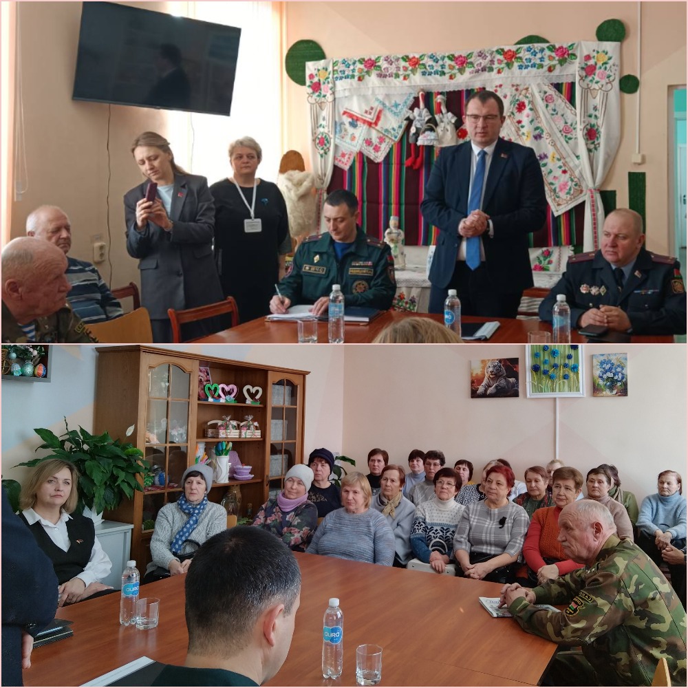 С посетителями и сотрудниками филиала встретилась информационно-пропагандистская группа под руководством председателя райисполкома Андрея Грицкевича. Центральной темой обсуждения стала «Оборонительная мощь белорусской армии и патриотизм в современных условиях». В числе других – профилактика преступлений, совершаемых в интернет-пространстве, и традиционно – вопросы безопасности жизнедеятельности населения.