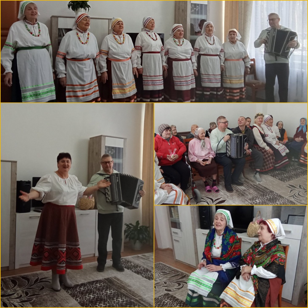 У рамках праекта "Кожная пятніца – роднае, сваё!" 20 лютага у аддзяленні кругласутачнага знаходжання грамадзян пажылога ўзросту і інвалідаў ДУ "Свіслацкі цэнтр сацыяльнага абслугоўвання насельніцтва" адбылася сустрэча з народным вакальным калектывам "Спадчына".